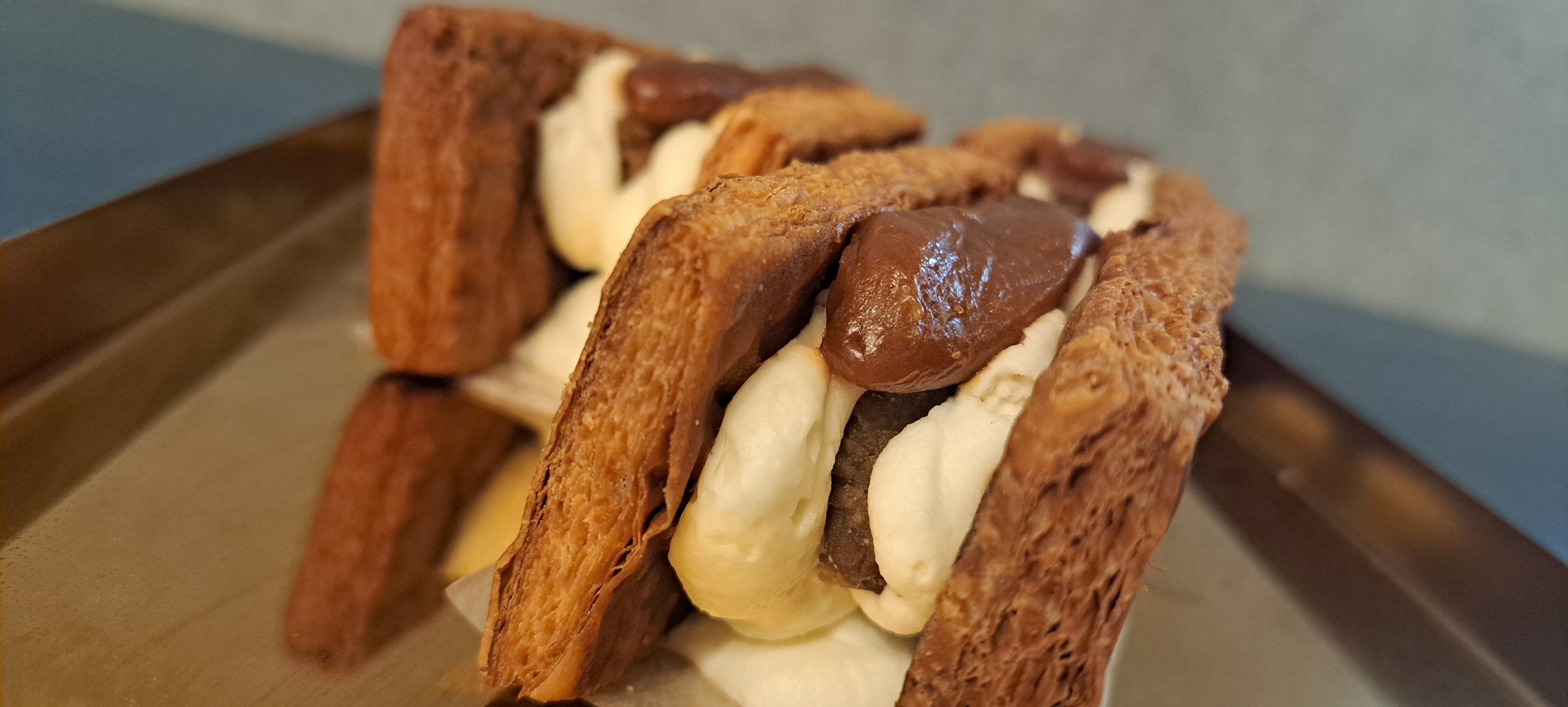 何層ものミルフィーユのサクサク感、なめらかなマスカルポーネクリームに